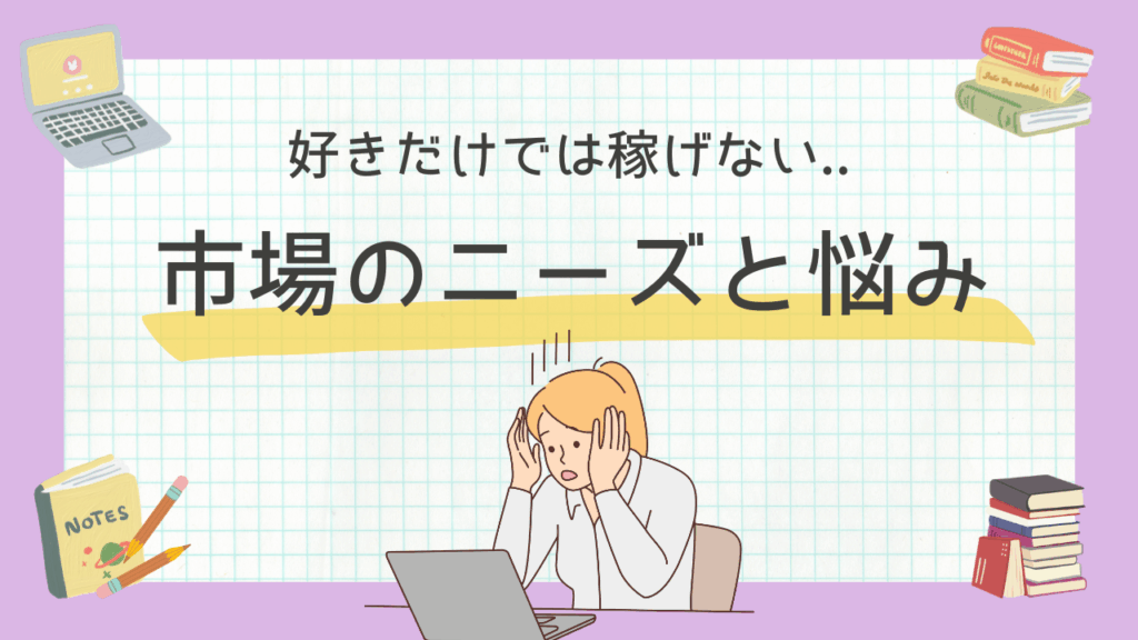 一方で、ビジネスを成立させ、実際に利益を生むのは、そのジャンルに「市場の需要(悩んでいる人の多さ)」と「収益性(支払われる単価)」があるかどうかです。